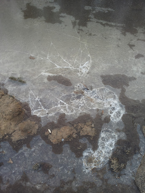 有時候沒有那麼冷,路上積水就只有表面薄薄一層結冰的圖: